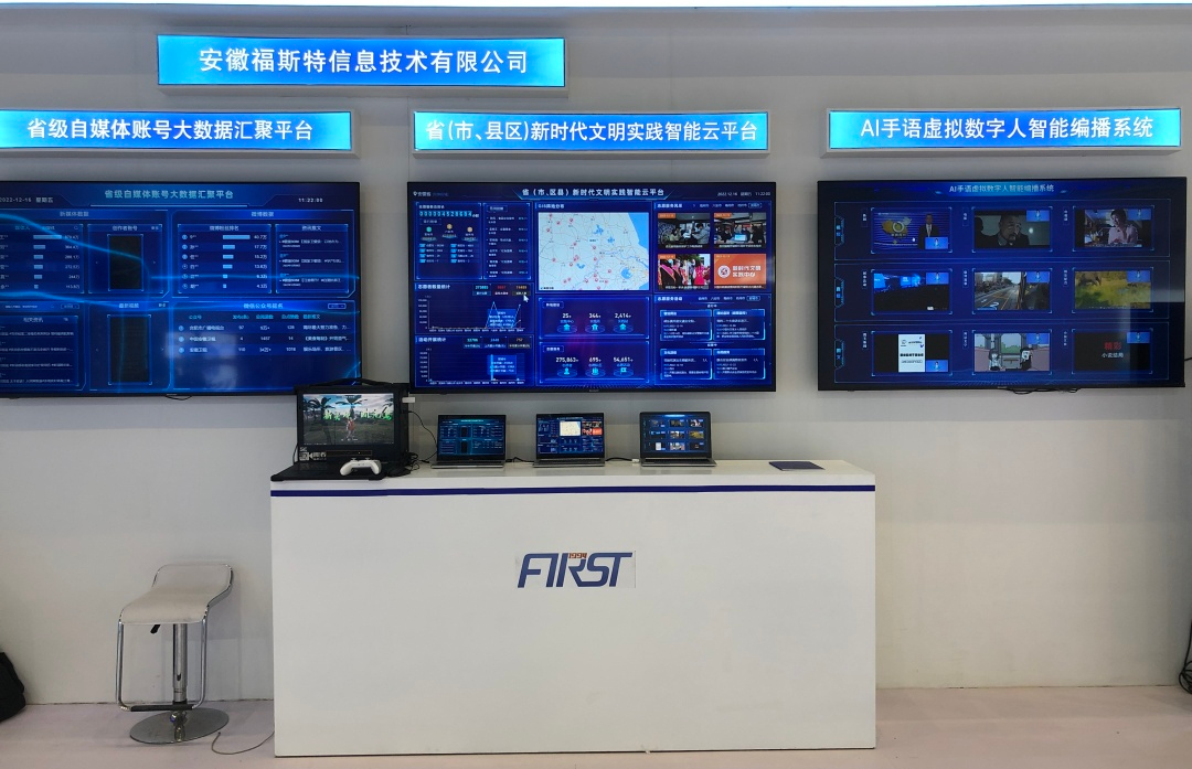 安徽福斯特信息技術(shù)有限公司此次應(yīng)邀參展,以廣電媒體發(fā)展為亮點(diǎn),集中展示大數(shù)據(jù)、人工智能呈現(xiàn)了AI-VLOG視頻智能合成系統(tǒng)+AI手語虛擬數(shù)字人智能編播系統(tǒng)+省級(jí)自媒體賬號(hào)大數(shù)據(jù)匯聚平臺(tái)+省(市、縣區(qū))新時(shí)代文明實(shí)踐智能云平臺(tái)技術(shù)。